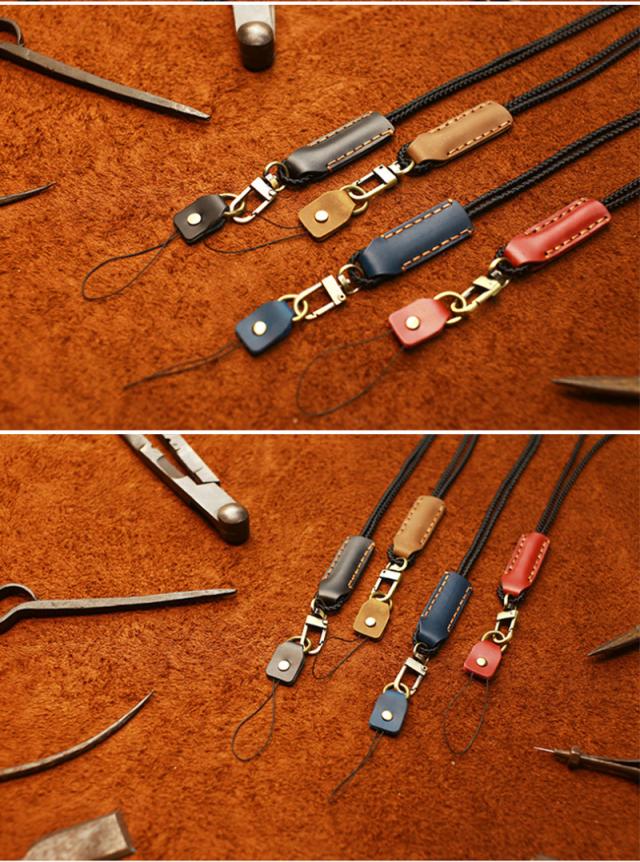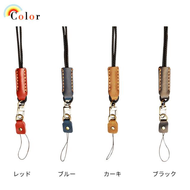 iPhone Xperia AQUOS Galaxy Android デジカメ 汎用 携帯 ストラップ 本革 レザー 落下防止 ネックストラップ フィンガーストラップ 首掛け スマホ用 落下防止 カラビナ付き 簡単着脱