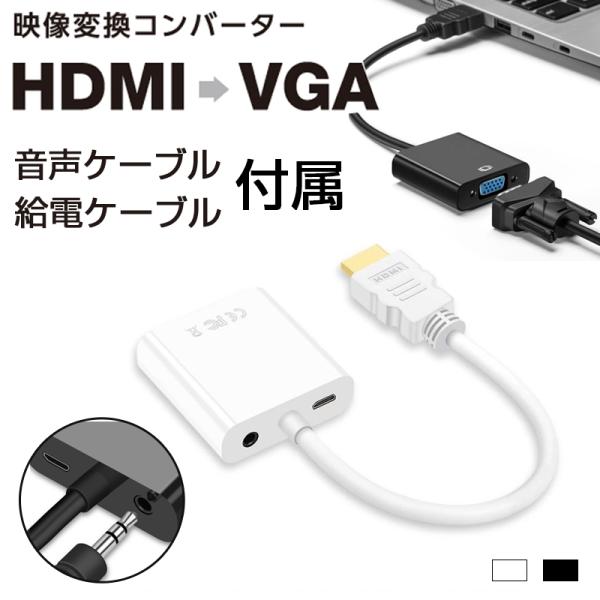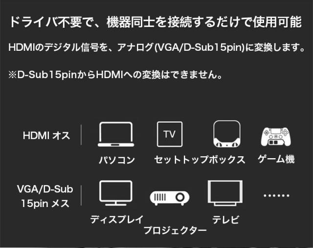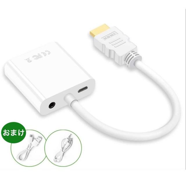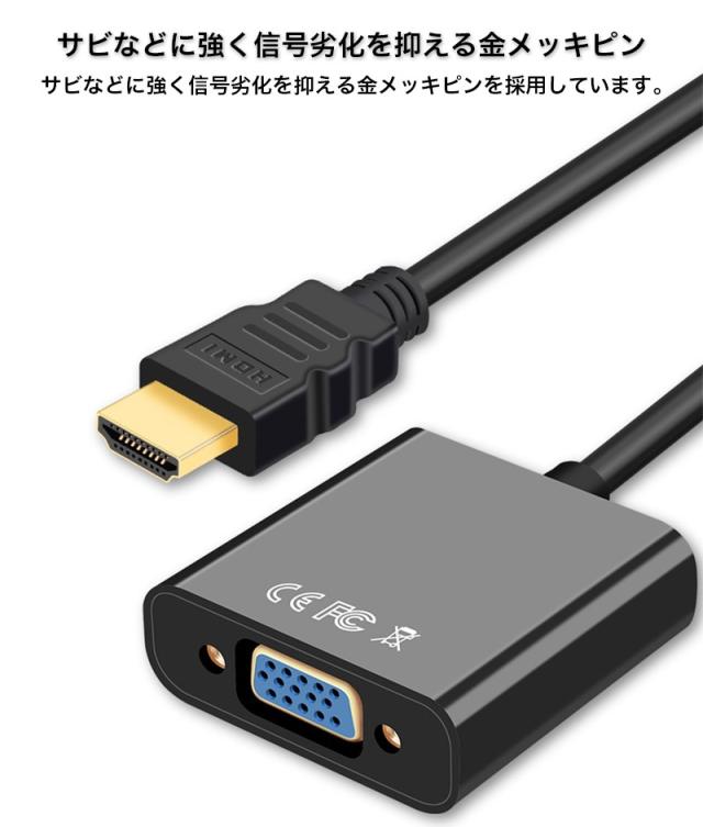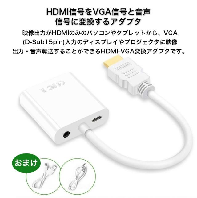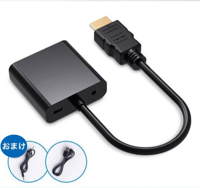 HDMI to VGA 変換 ケーブル アダプタ 音声 出力 3.5mm hdmi vga D-sub15pin 変換アダプタ 変換ケーブル 給電ケーブル 付属 スイッチ ノートPC リモートワーク