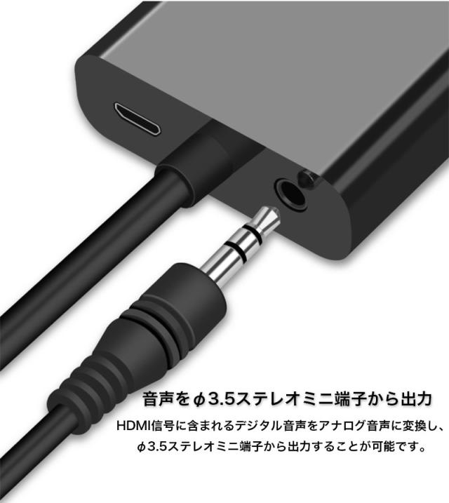HDMI信号に含まれるデジタル音声をアナログ音声に変換し、φ3.5ステレオミニ端子から出力することが可能です。