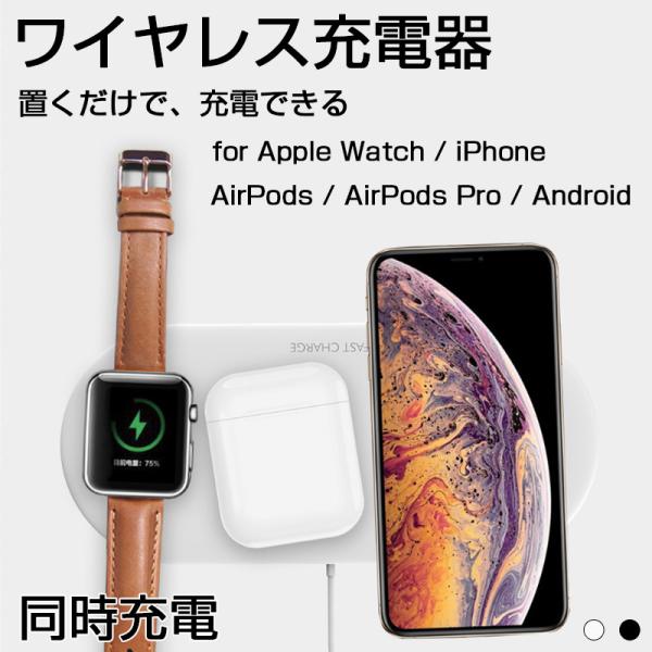 多機能 ワイヤレス充電器 Qi対応 3つ同時 ワイヤレス充電器 iPhone11 iPhone se2 Apple Watch AirPods アンドロイド ワイヤレス充電器 急速 同時充電 置くだけ