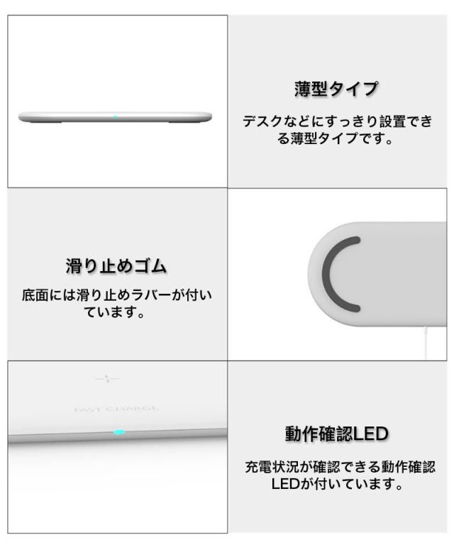 iPhone11 Pro、iPhone11 Pro Max、iPhone11、iPhoneXS、iPhoneXS Max、iPhoneXR、iPhoneX、iPhone8、iPhone8 Plus、AirPods Pro、AirPods3、AirPods2、GALAXY S8、GALAXY S8+、GALAXY S9、GALAXY S9+、Xperia XZ3、Xperia XZ2、Xperia XZ2Premium等Qi規格対応の機種適用