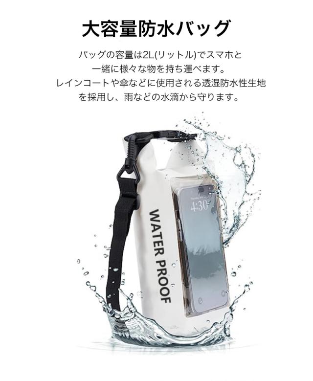 ドライバッグ 防水バッグ 海 ショルダー ストラップ付き 釣り スマホ 携帯 IPX6防水 防水ポーチ 防水カバー 肩掛け 画面操作 アウトドア プール 夏 荷物 収納