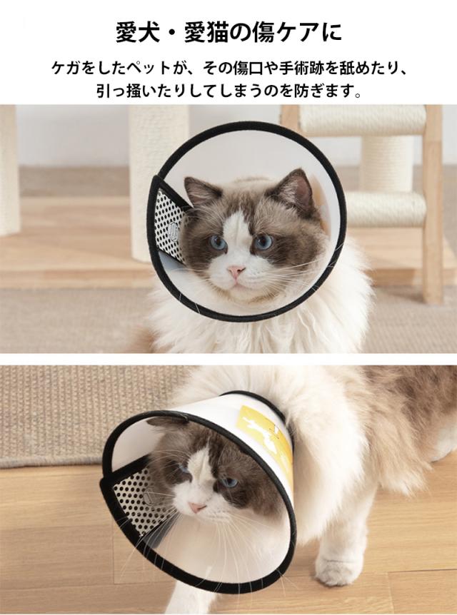 エリザベスカラー 2set ペット 犬用 猫用 なめ防止 噛み防止 半透明 マジックテープ式 首回り 調節可能