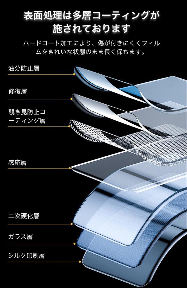 曲面成形で画面の端までガード、覗き見防止機能が付いたガラスフィルム。
