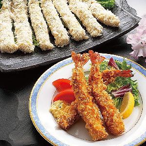 ベトナム産バナメイ海老などを原料として、手付けでパン粉付けをしました。衣率は60%で、風味、食感に優れています。