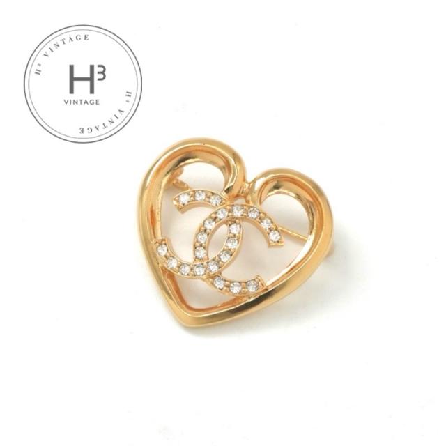 シャネル CHANEL ブローチ コサージュ ゴールド ハート ココマーク ラインストーン 送料無料