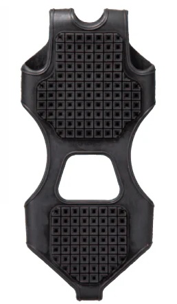 柔らかい特殊ゴムと階段状の意匠により、氷・雪で凹凸がある路面や大理石のようなツルッとした床でもしっかりと接地します。