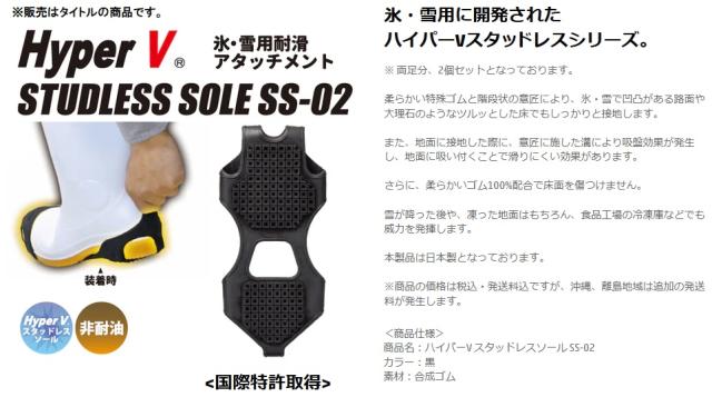 日進ゴム SS-02 HyperV スタッドレスソール Lサイズ(25.5〜30.0cm) 黒 氷・雪用耐滑アタッチメント 送料無料