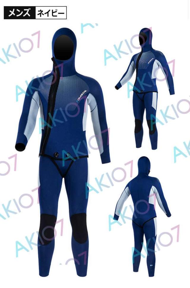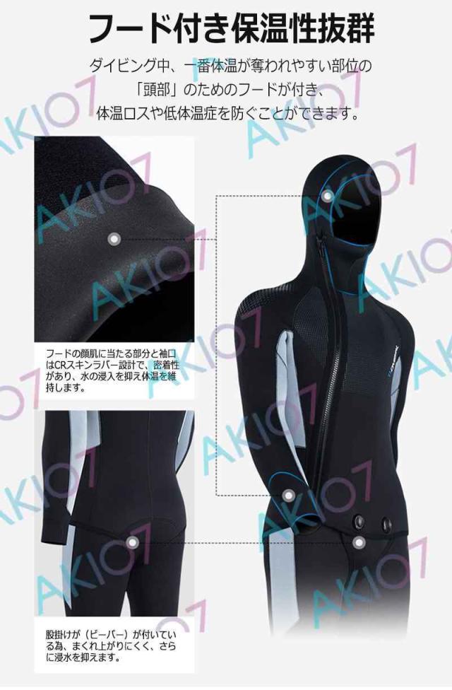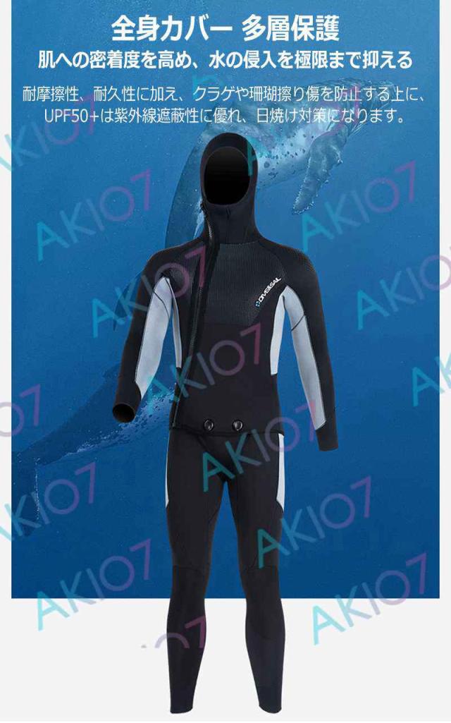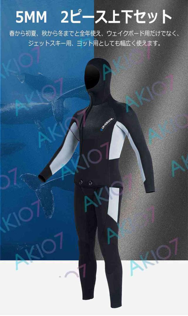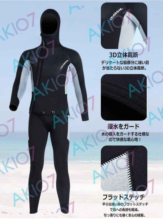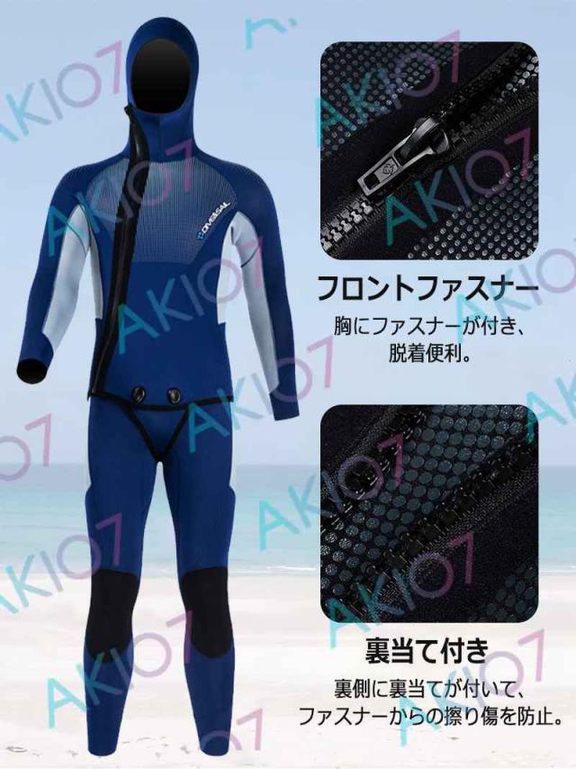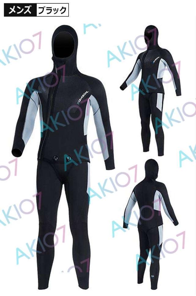 【5mm厚さ&ロングジョン仕様】フード付き 2ピース 上下セット メンズ ウェットスーツ フルスーツ トライアスロンウェア 素潜り ネオプレン 冬 防寒 魚突き