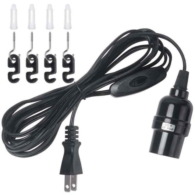 DiCUNO コード付き ソケット E26 電球ソケット コンセント式 スイッチ付き 吊り下げ 4m おしゃれ (ブラック, 1個入)