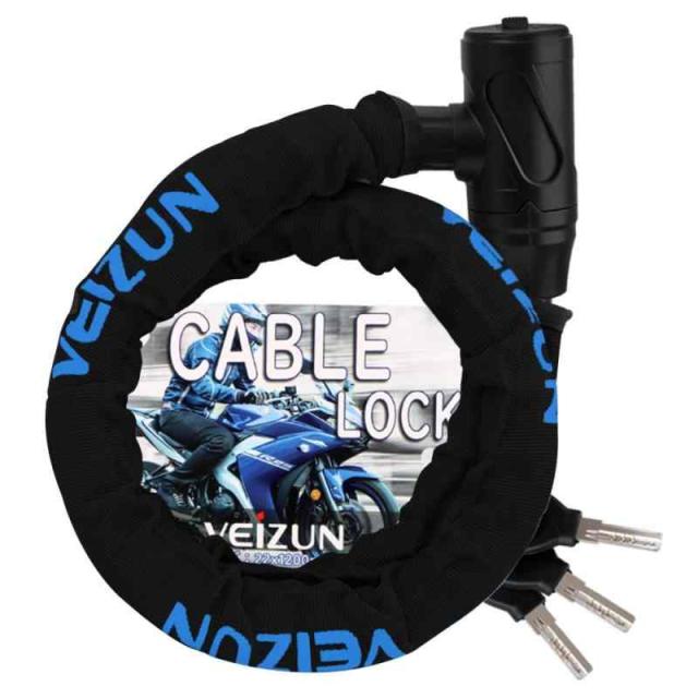 VEIZUN バイクロック チェーン ワイヤー 自転車 スチール タイヤロック φ(直径)22mm×1200mm 盗難防止 多用途 頑丈 極太 極厚 ブラック
