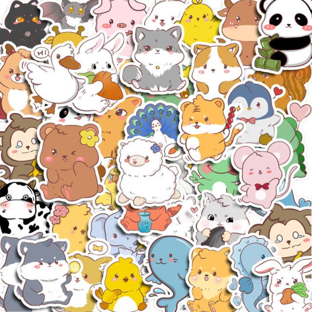 小動物 ステッカー 動物 シール かわいい 50枚 やや大きめ イラストステッカー ペット 犬 小鳥 カエル 熊ちゃん ライオン 兎 牛 カエル パンダ ウサギ 豚 ブタ キャラクター ステッカー コラージュ 素材 海洋生物 アンティーク デコレーション ハンドメイド 日記 DIY