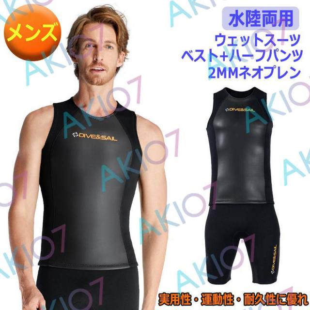 【単品販売】ショートジョン メンズ ベスト ハーフパンツ ウェットスーツ 2mmネオプレン 男性 スキン ジャージ素材 合わせて サーフィン マリンスポーツ 保温