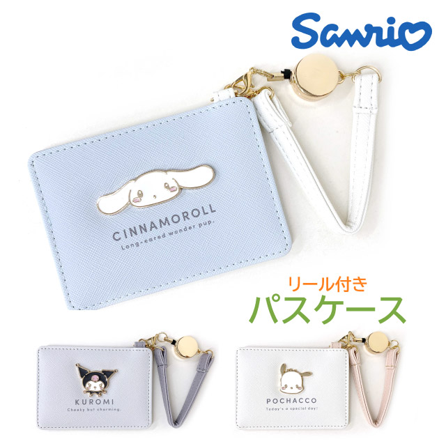 定期入れ リール 付き サンリオキャラクターズ パスケース 75096 リール付きパスケース 定期入れ 子ども かわいい パス ケース おしゃれ サンリオ ポチャッコ シナモロール クロミ 人気 中学生 小学生 レディース 通勤 伸びる 通学 プレゼント ICカード sanrio 水色 大人