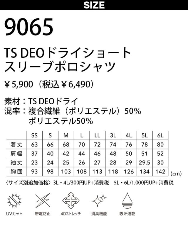 TS DESIGN 藤和 9065 TS DEO ドライショートスリーブポロシャツ TS独自開発の消臭&UVカット素材 消臭高機能半袖ワークポロシャツ 年間対応 ストレッチ 消臭 吸汗速乾 帯電防止 作業服 作業着