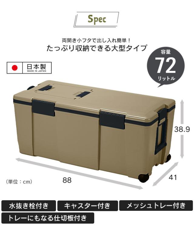 【値下げ】大型 クーラーボックス 72L サンドベージュ おしゃれ ハンドル付 キャスター付 両開きフタ 水抜き栓付 日本製 キャリー かわいい シンプル アウトドア BBQ キャンプ レジャー 海水浴 部活