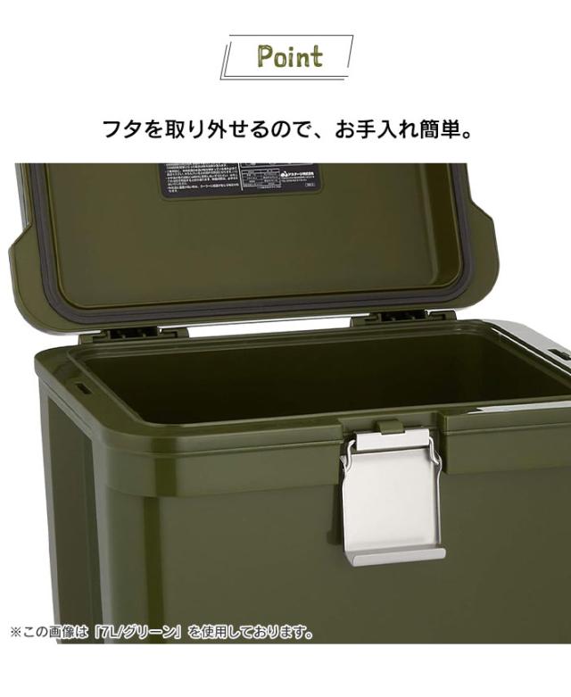 | [本体・フタ・ベルト]ポリプロピレン [バックル]ステンレス [フタパッキン]発泡ポリエチレン [断熱材]発泡スチロール |