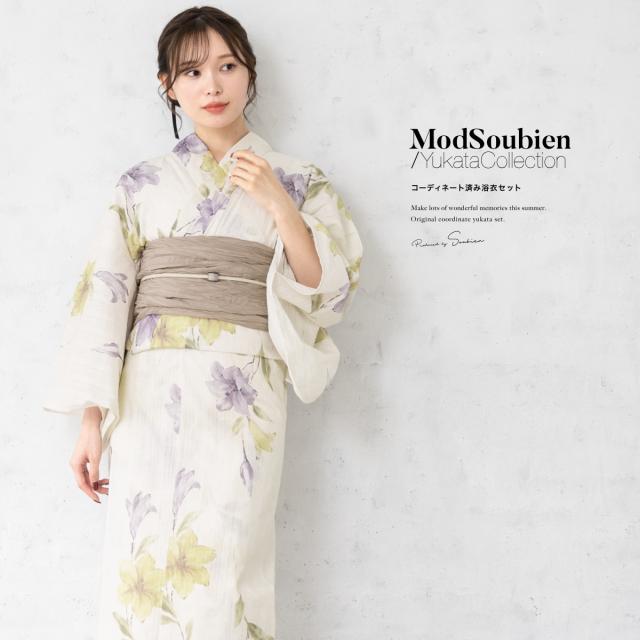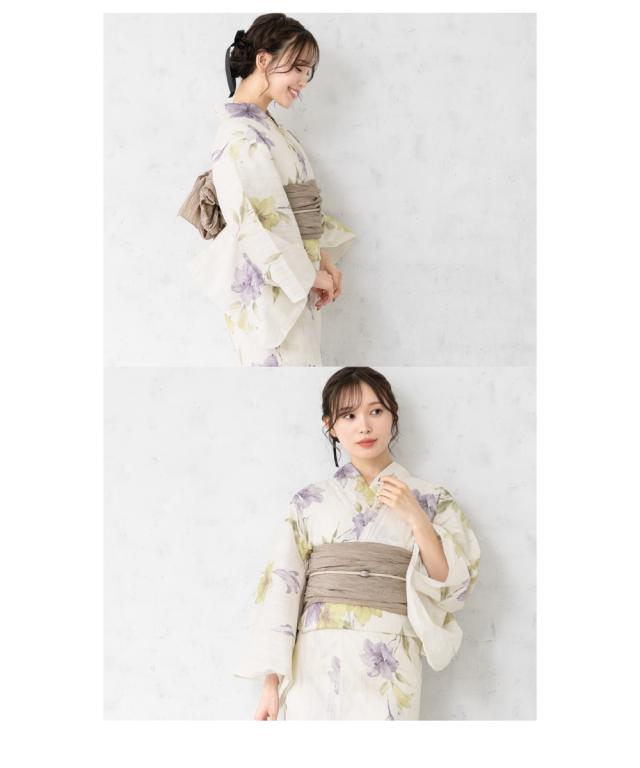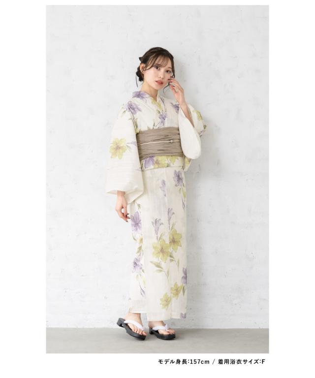 浴衣 セット レディース 浴衣セット 兵児帯 2026 大人 3点セット イエロー 紫 白 ブラウン 百合 花 綿 帯 フリーサイズ 送料無料