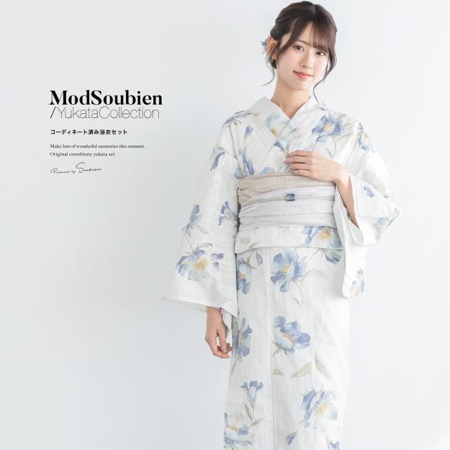 こちらの商品は、浴衣・帯・下駄の3点セットです。セット内容の一部変更や、それに伴う値引きは承っておりません。