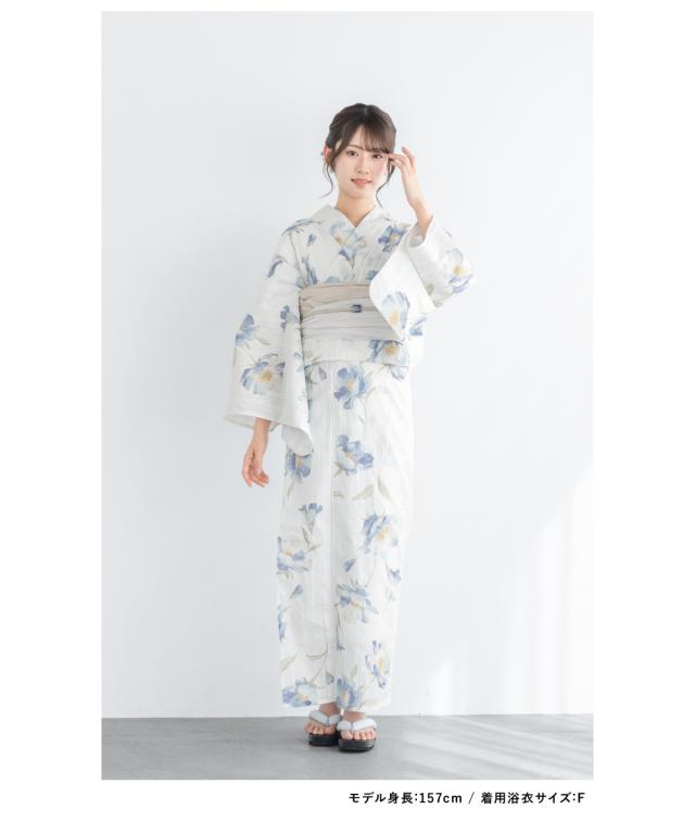 浴衣 セット レディース 浴衣セット 兵児帯 2026 大人 3点セット 青 ベージュ 白 ポピー 綿 帯 夏 フリーサイズ 送料無料