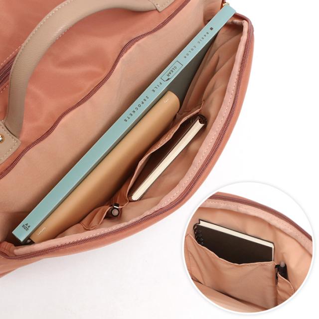 メイン収納の内側にはA4サイズが入るオープンポケット付きで、