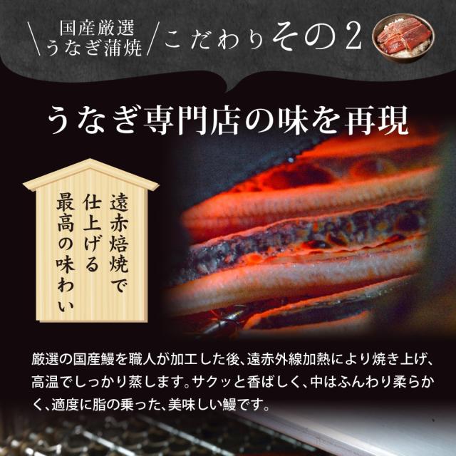 うなぎ(国内産)、しょうゆ(小麦・大豆を含む)、みりん、発酵調味料、ぶどう糖果糖液糖、砂糖/増粘剤(加工でんぷん)、着色料(カラメル・紅麹)、調味料(アミノ酸等)、増粘多糖類