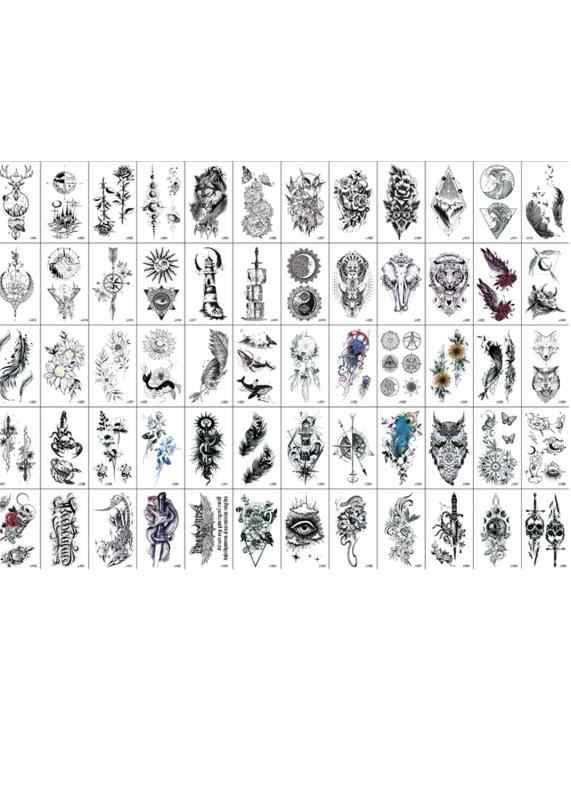 【セット内容】タトゥーシール 60枚セット、パッケージには60個の異なるパターンが含まれており、足、腕、胸、背中に任意に貼り付けることができます。