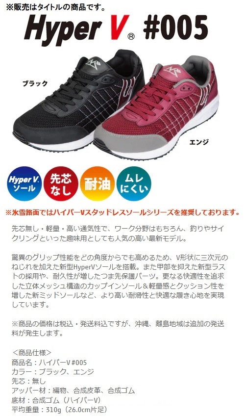 日進ゴム ハイパーV HyperV #005 作業用スニーカー 28.0cm エンジ 作業靴 先芯無し ワークシューズ 送料無料