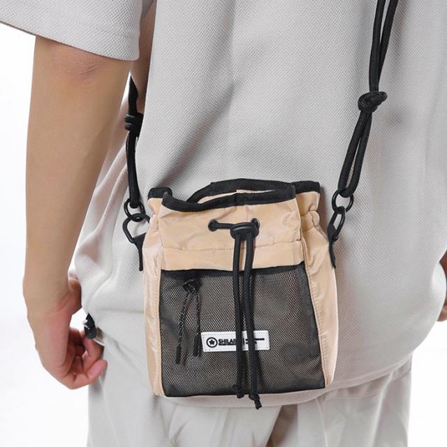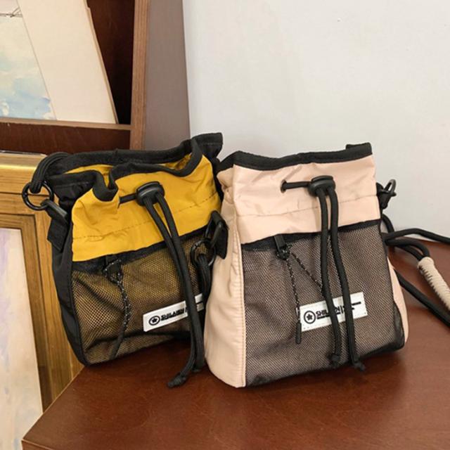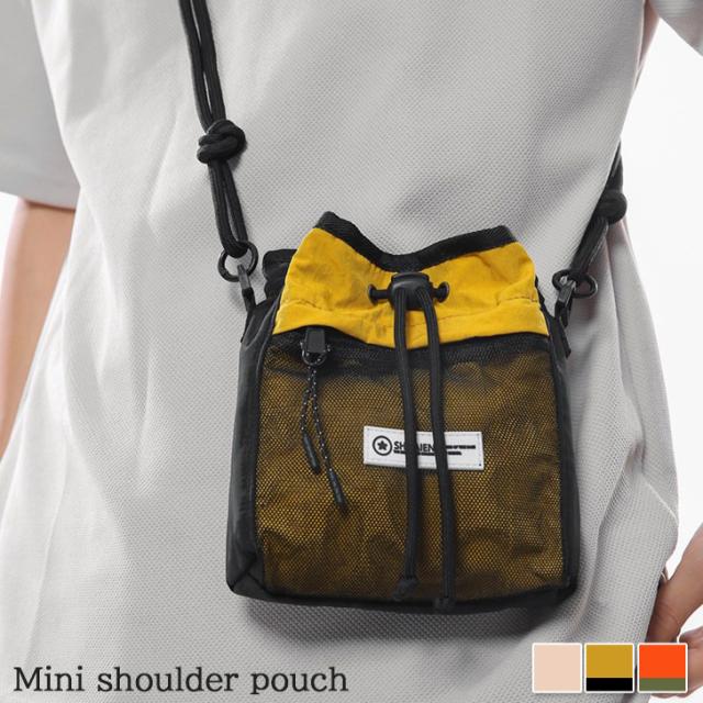 新作 ナイロン 巾着 メッシュポケット ロープ ミニ ショルダーポーチ レディース メンズ バッグ ショルダーバッグ ポーチ 小物入れ 小さい 小さめ 斜めがけ 肩掛け 軽量 カジュアル おしゃれ 可愛い アウトドア