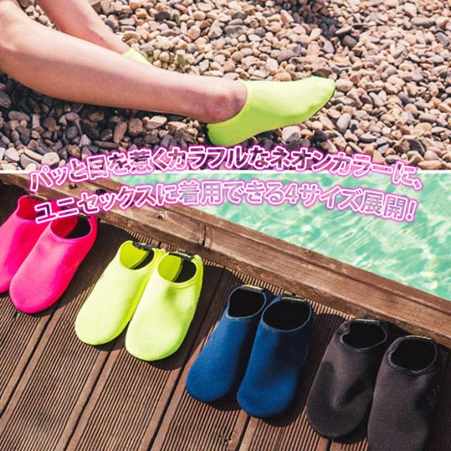 新作 選べる5カラー×4サイズ 水陸両用 滑り止め付き ネオンカラー ユニセックス マリンシューズ ビーチシューズ アクアシューズ ウォーターシューズ メンズ レディース 靴 くつ シューズ 滑り止め 超軽量 速乾