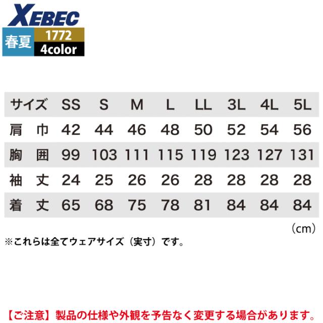 ジーベック XEBEC 作業服 1772 半袖シャツ SS-LL 春夏用 作業着