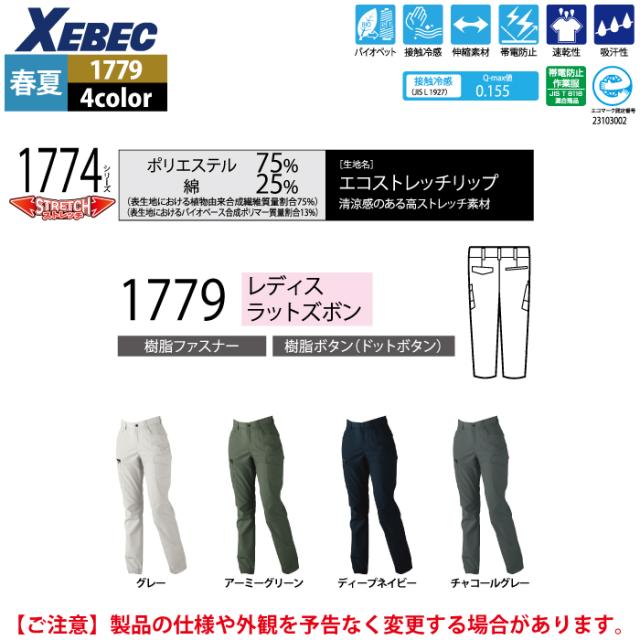 ジーベック XEBEC 作業服 1779 レディースラットズボン 17号-19号 春夏用 作業着