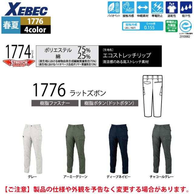 ジーベック XEBEC 作業服 1776 ラットズボン 70-100 春夏用 作業着