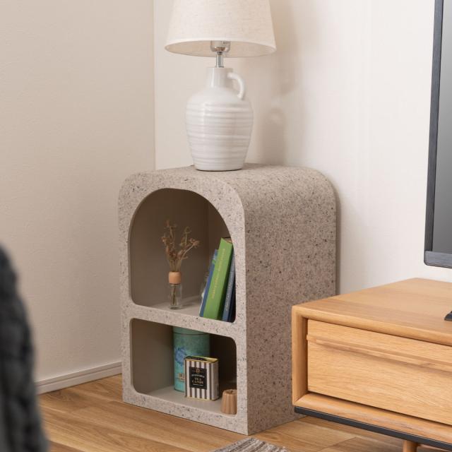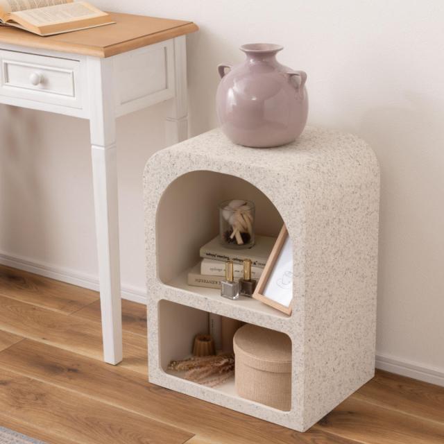 テラゾー柄と呼ばれる石の様な模様を施したミニシェルフです。トレンド感のあるデザインがお部屋のアクセントになり、個性ある空間を演出します。