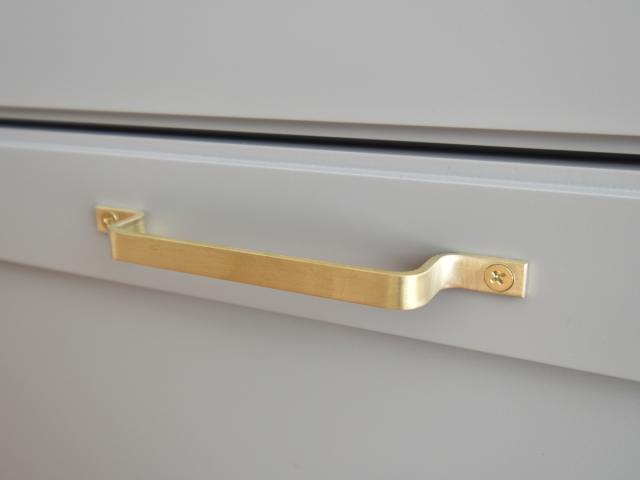 レトロな雰囲気が漂う真鍮の取手です。表面にはヘアライン加工を施しているので、柔らかな輝きで上品な風合いです。
