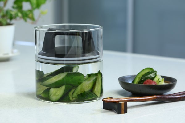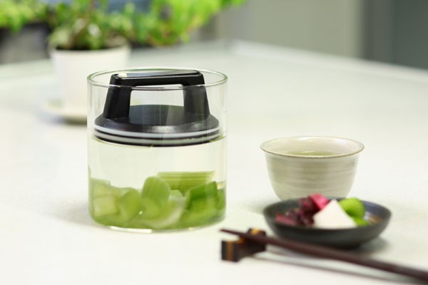空気がない分、漬け物などの漬け料理にも最適です。そのまま食卓に出せるデザインです。