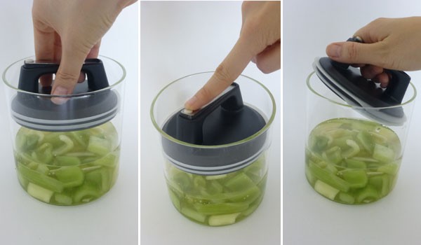 特殊な蓋で空気を抜いて長期保存ができる容器