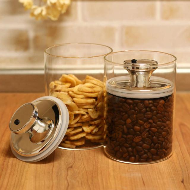 余分な空気を減らして酸化を防止し、湿気を嫌う茶葉やパスタ、コーヒー豆が傷みにくいガラス容器です。