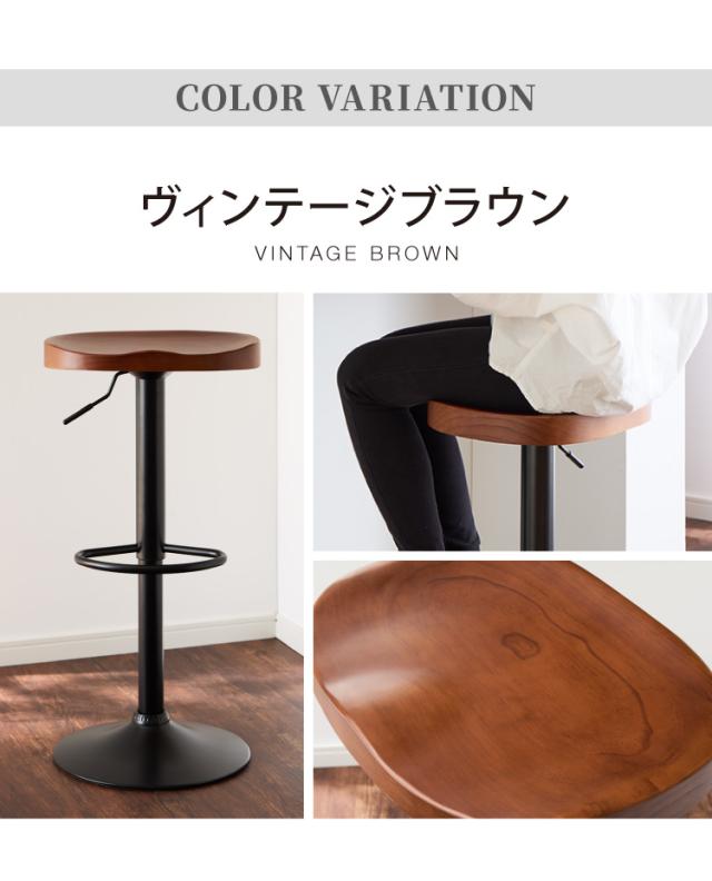 ヴィンテージモダン昇降式カウンターチェア/2脚セット