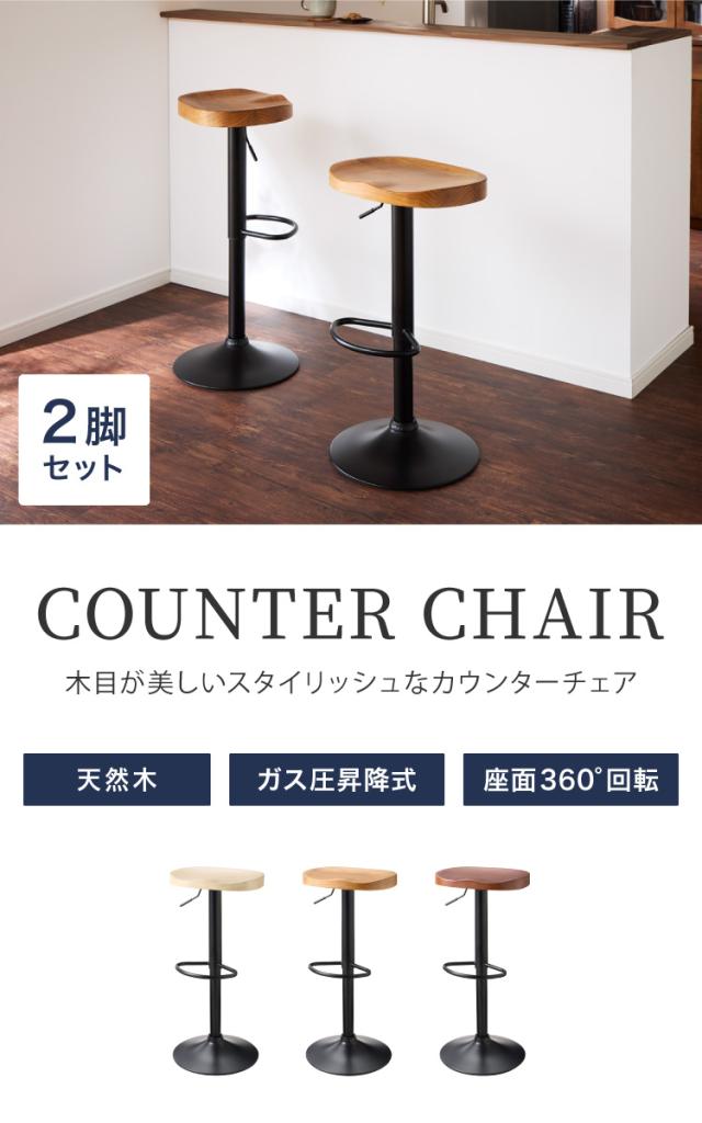カウンターチェア 2脚セット 木製 天然木 高さ調節 昇降式 脚置き付き 北欧 おしゃれ シンプル モダン ナチュラル バーチェア ダイニングチェア スツール 座り心地 木目 カフェ 椅子 インテリア【送料無料】
