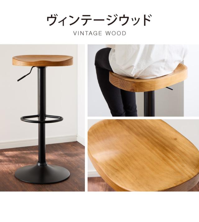ヴィンテージモダン昇降式カウンターチェア/2脚セット