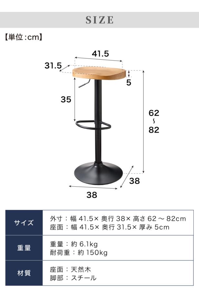 ・ガス圧式の高さ調節で座面を62~82cmの間で無段階に調節が可能。