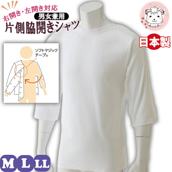 片側 脇開き 7分袖シャツ 半身まひ 麻痺 拘縮 シャツ 入院 介護 怪我 M/L/LL | 男女兼用 介護インナー 日本製