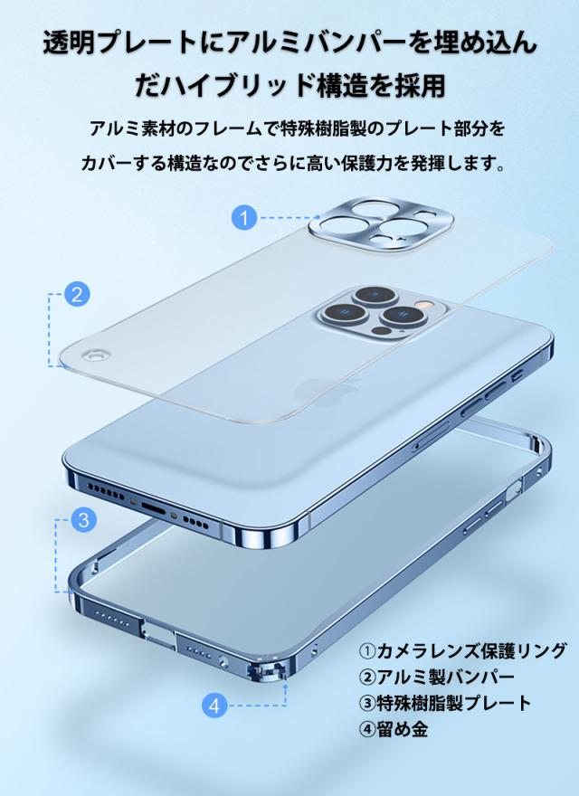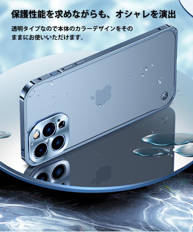 iPhone17 pro ケース 耐衝撃 iPhone16 Pro Max バンパーケース アルミ iPhone15 14 13 12 11 Pro Max ケース クリア iPhone16 plus ケース 透明 レンズカバー