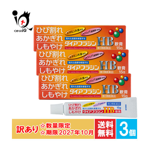 訳あり【第3類医薬品】ダイアフラジンHB軟膏 15g×3個セット【富山めぐみ製薬】【訳あり商品 使用期限2027年10月】荒れた皮膚を修復する ひび割れ・あかぎれ・しもやけに ビタミンA油・リピジュア配合