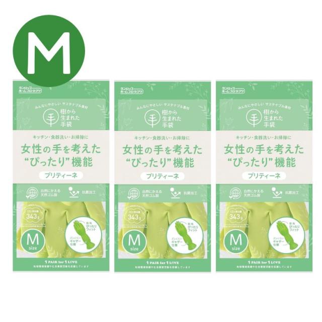 プリティーネ Mサイズ グリーン 樹から生まれた手袋 プリティーネ M 9728 炊事手袋 ゴム手袋 ×3個セット