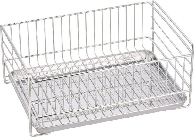 製品サイズ:(約)幅30×奥行21.5×高さ13cm 製品重量:(約)0.9kg 素材・材質:バスケット・トレー/ステンレス鋼、すべり止め/ポリプロピレン 生産国:中国 場所をとらないミニサイズ。 トレーはお手入れラクラクのスライド式。 洗いやすい・・・汚れのたまりやすいワイヤーの交差を減らしました。 安心・・・ワイヤーの先端部はバリをなくして安心加工 衛生的・・・サビにくく、丈夫なステンレス製 |
