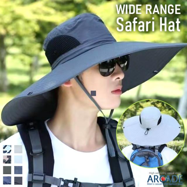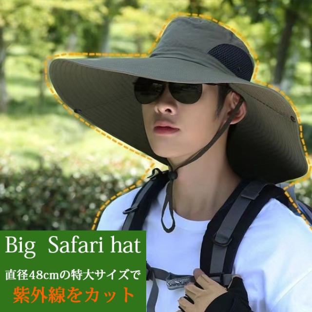 サファリハット 特大サイズ 紫外線カット 夏新作 帽子 メンズ レディース つば広 大きい アウトドアハット UVカット 紫外線対策 日よけ 折りたたみ