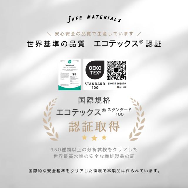 | 【世界基準の品質 エコテックス認証】 安心安全の品質で生産! 國際規格エコテックス認証取得 |