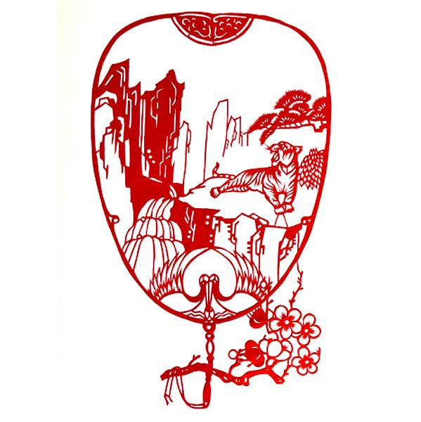 B級品【切り絵】額付 扇子 赤寝虎 鶴梅 B4 【送料無料】(沖縄別途1000円)| 箭紙,せんし,虎,タイガー,白虎,中国,中華街,アート,アンリマティス,雑貨,ノスタルジック,お土産,ギフト,プレゼント
